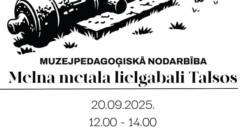 Read More20. septembrī no 12:00 līdz 14:00 Talsu novada muzejā norisināsies muzejpedagoģiskā nodarbība “Melnā metāla lielgabali Talsos”. Nodarbība notiks Eiropas kultūras
