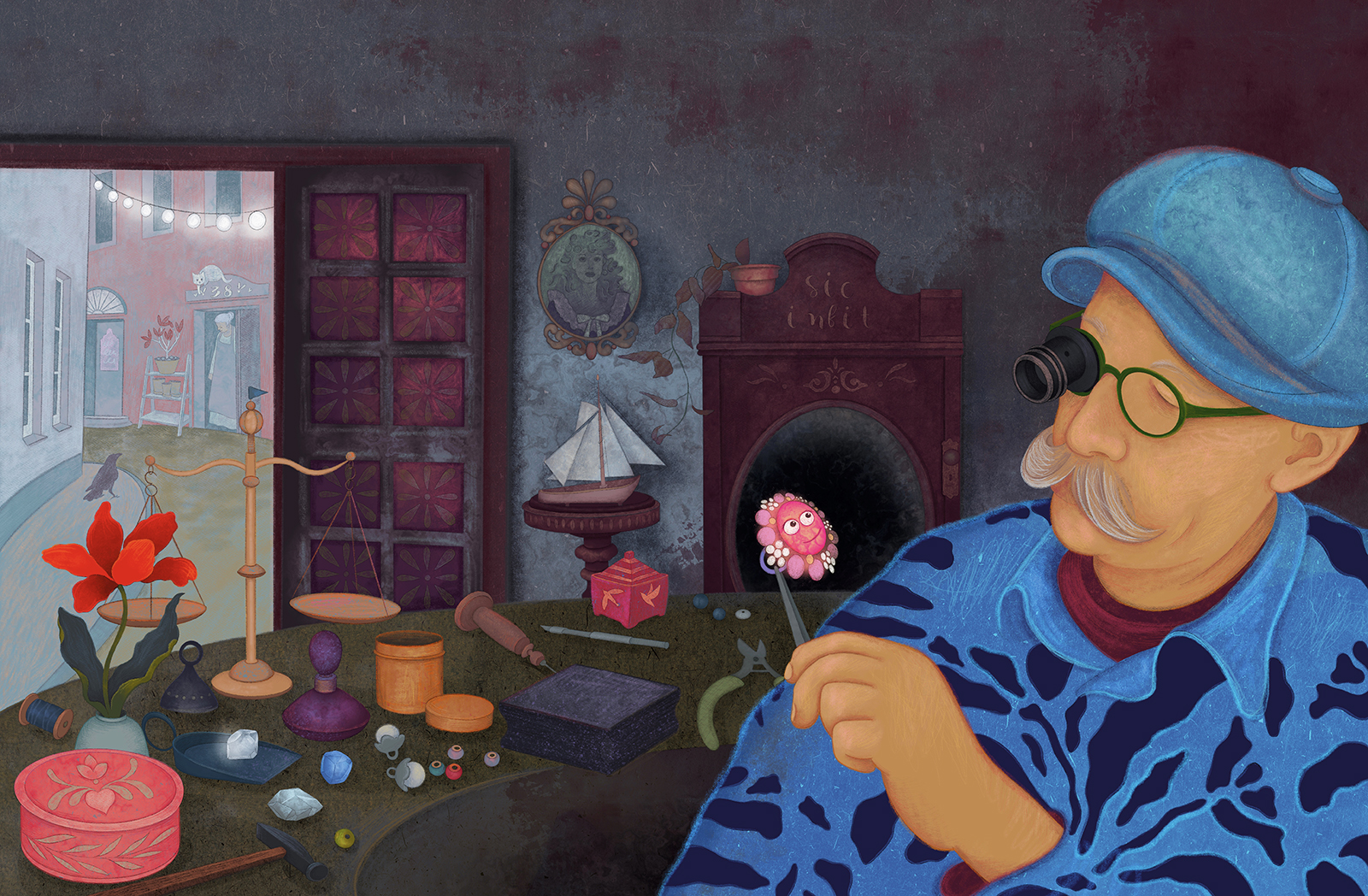Iespējams, ka jūsu grāmatu plauktā ir Māras Lībietes dzejoļu grāmata “Mans draugs dzejolītis” (2021) vai Pāvila Raudoņa stāsts “Visskaistākais mežs” (2024) un jūs jau esat iemīļojuši kādas no Sandras Vingres digitāli zīmētajām ilustrācijām. Māksliniece daiļliteratūras ilustrēšanai pievērsās vien 2021. gadā, paverot jaunu daiļrades posmu, jo, pēc Sandras teiktā, viņa ir gleznotāja un zīmēšana ar digitālo planšeti ir interesanta, bet samērā grūta tehnika, ar kuru līdz tam netika strādāts. 2017. gadā Latvijas Mākslas akadēmijā tika iegūts maģistra grāds glezniecībā, dažus gadus agrāk tika absolvēta arī Kristīgā akadēmija, kur māksliniece iepazina Bībeles mākslas jomu. Sandra Vingre īsu brīdi studēja arī Baltu filoloģiju Latvijas Universitātē un varētu teikt, ka ilustrācijā apvienojas vairākas viņas intereses. Tas ir darbs ar tekstu un attēlu. Māksliniece saka: “Manas bērnības neatņemama sastāvdaļa vienmēr bijušas grāmatas, to ilustrācijas, un tagad, pašai ilustrējot bērnu grāmatas, redzu to kā sava aicinājuma likumsakarīgu turpinājumu.” Sandra piekrīt pieņēmumam, ka ilustrators zīmējot atjauno saikni ar savu iekšējo bērnu un spēju “brīnīties”. Tik tiešām, Sandras ilustrācijas ir detalizētas un šķiet, ka katrs zīmējums ir kā maza pasaule lielajā universā. Mākslinieces rokraksts darbos ir nolasāms, domājams, redzēsim vēl vairākas viņas ilustrētas grāmatas. Sandra joprojām glezno. Izstādi papildina arī vakara aina eļļā uz audekla. Sandras gleznas ir iekļautas vairākās grupu izstādēs. Personālizstādes māksliniece rīko kopš 2011. gada.